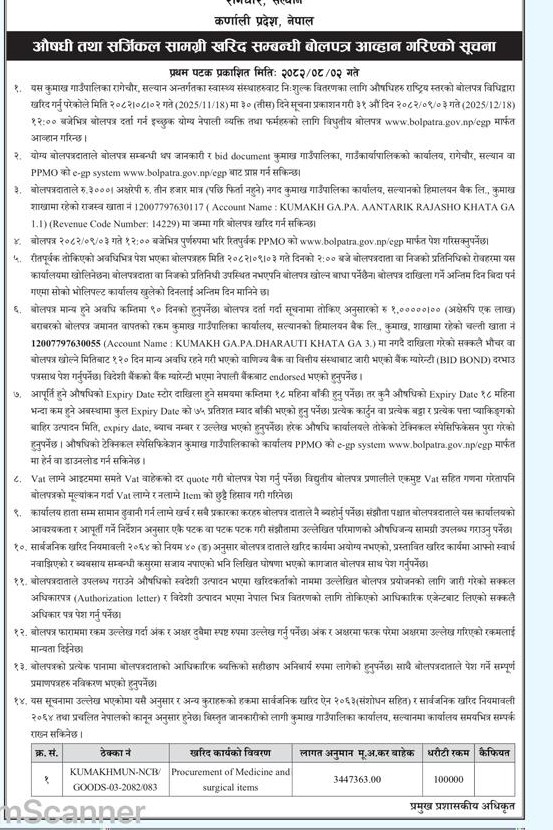 » औषधि तथा सर्जिकल सामग्री खरिद सम्बन्धी बोलपत्र आव्हान गरिएको सूचना ।