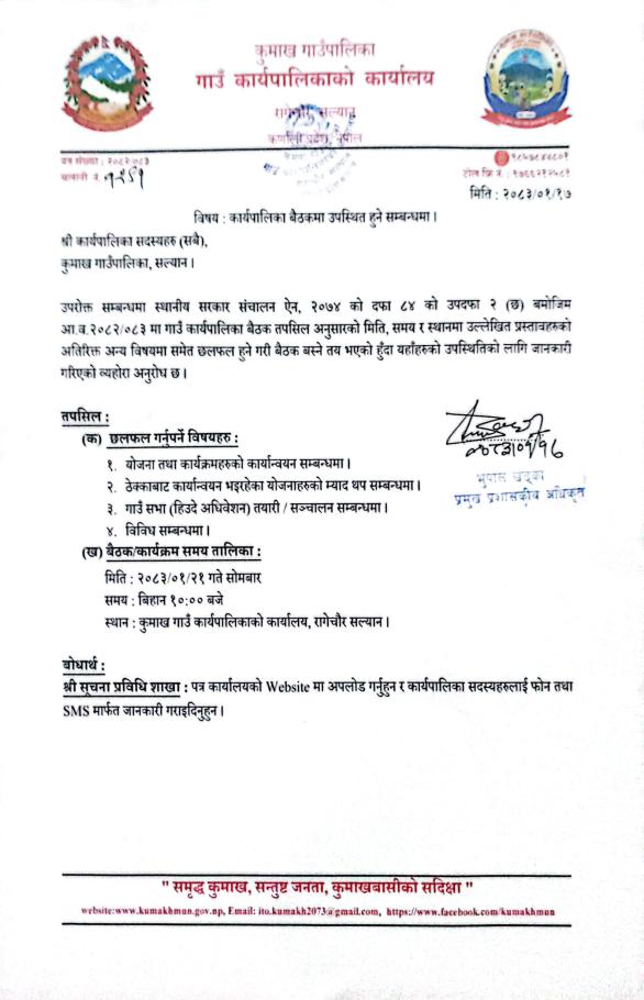 » कार्यपालिका बैठकमा उपस्थित हुने सम्बन्धमा ।