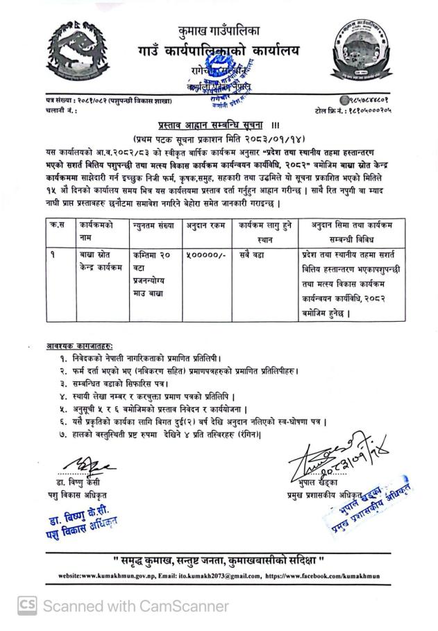 प्रस्ताव आह्वान सम्बन्धि सुचना ।