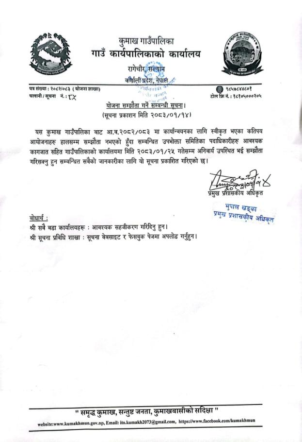 योजना सम्झौता गर्ने सम्बन्धि सूचना ।