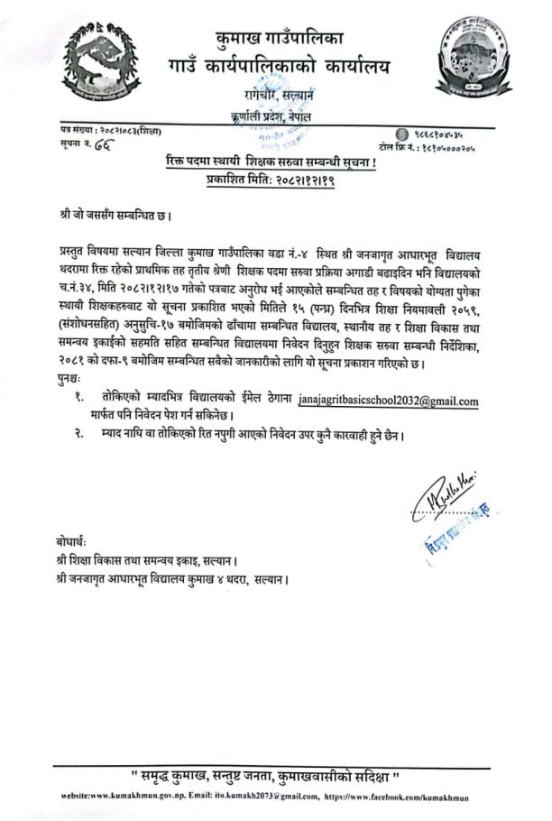 रिक्त पदमा स्थायी शिक्षक सरुवा सम्बन्धि सूचना ।