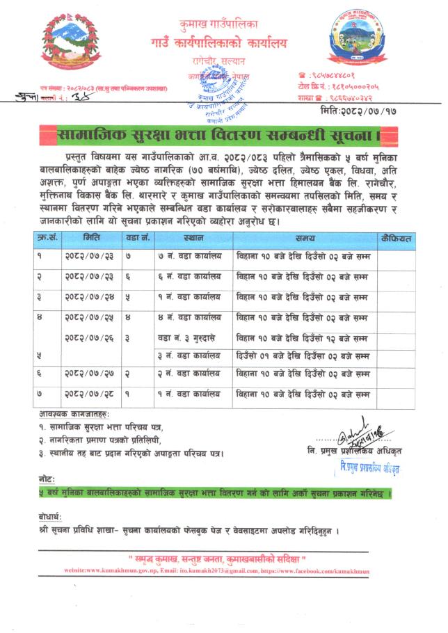 सामाजिक सुरक्षा भत्ता वितरण सम्बन्धी सूचना ।