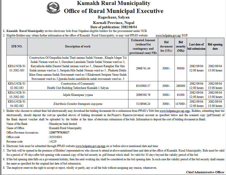 सार्वजनिक खरिद/बोलपत्र सूचना