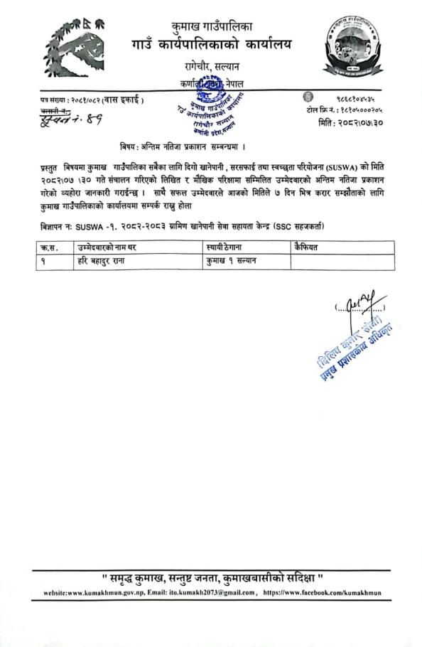 अन्तिम नतिजा प्रकाशन सम्बन्धी सूचना ।
