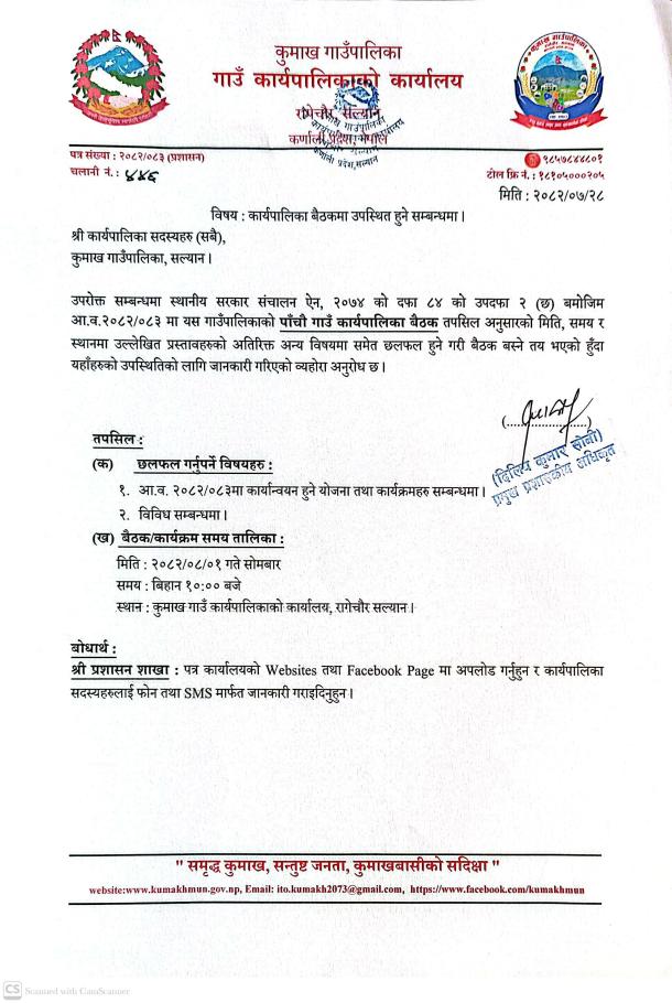 » कार्यपालिका बैठकमा उपस्थित हुने सम्बन्धमा ।