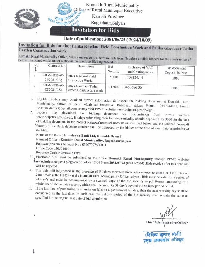 सार्वजनिक खरिद/बोलपत्र सूचना